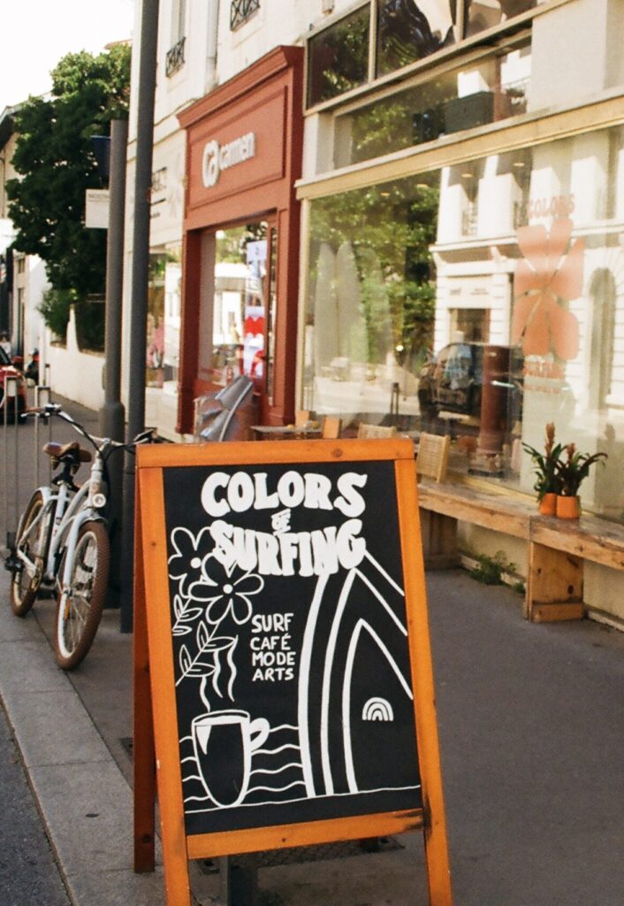 Pour ce projet, j’ai imaginé et réalisé un dessin sur-mesure pour le stop-trottoir du shop Colors of Surfing, concept store réputé et très fréquenté à Biarritz. L’intention était de concevoir un support visuel fort et attractif, parfaitement aligné avec l’univers de la marque, capable de capter immédiatement le regard des passants et de susciter la curiosité. Ce travail graphique a été pensé comme une véritable extension de l’identité du magasin, traduisant son esprit libre, créatif et solaire, inspiré par la culture surf et l’art de vivre biarrot. Chaque détail, des formes aux couleurs en passant par le style du dessin, a été soigneusement étudié afin de refléter l’ambiance unique du lieu, tout en renforçant sa visibilité et son impact dans cet espace emblématique et vivant de Biarritz.